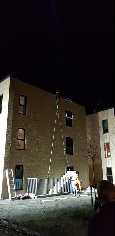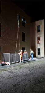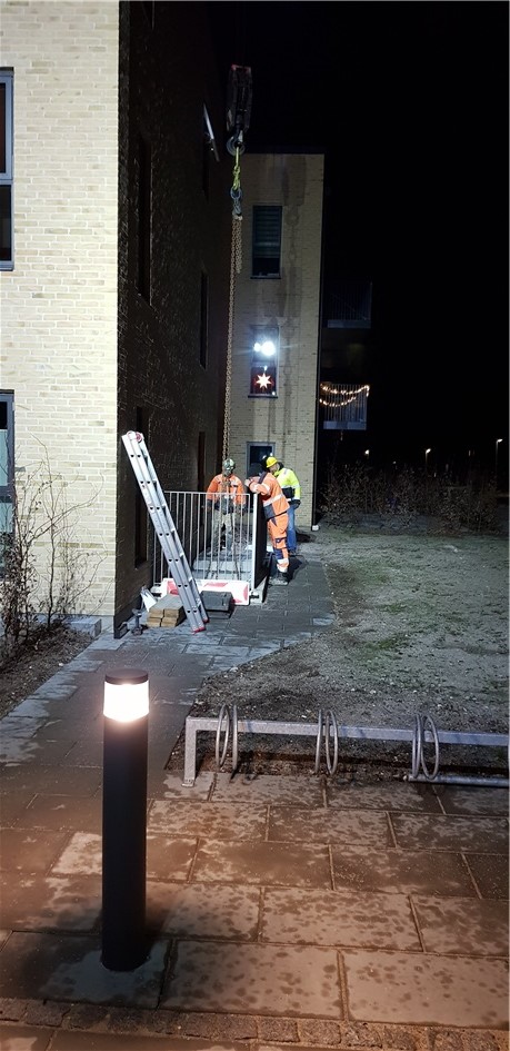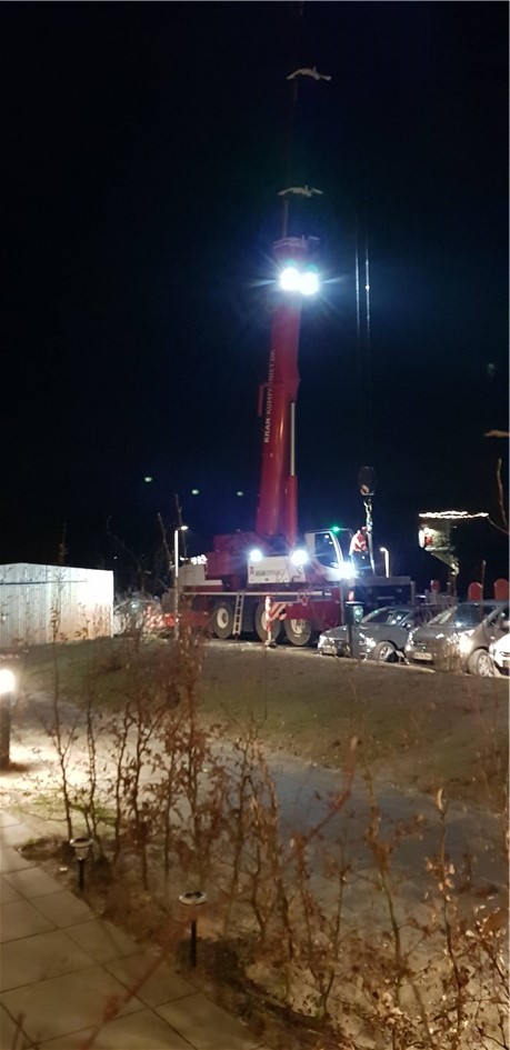 Som i nok har hørt/set har vi vand i kælderen mod øst, her sidst på eftermiddagen kom der så en stor kranvogn, som skulle løfte trappen væk, så de evt. kan finde orsagen til at vi har vand i kælderen.